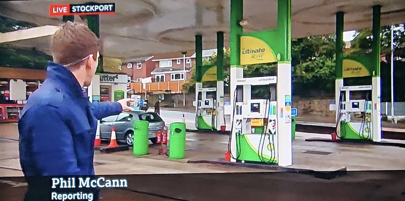 Phil McCann was sent to a BP petrol station in Stockport which had run out of petrol. The fuel crisis is the story at the forefront of many news organisations agenda today.